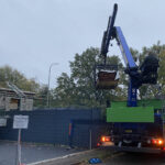 Endlich war es dann am 18. Oktober so weit und die Jungs kamen vor Ort und bauten schon mal das Gerüst auf. Wie aber zu erwarten, wenn man im Herbst anfängt ein Dach zu machen – machte das Wetter einen Strich durch die Rechnung. Den Rest der Woche, war Regen angesagt und somit nicht daran zu denken loszulegen. Jedoch wurde schon mal Ware geliefert.