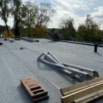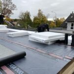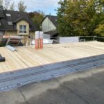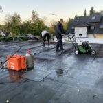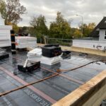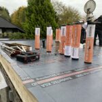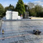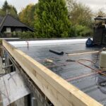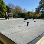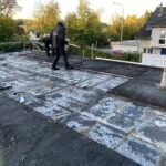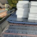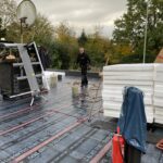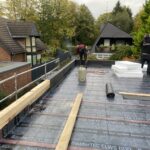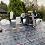 Montag ging es weiter mit den dritten Abschnitt des Abrisses. Den Rest der Woche ging es dann weiter mit dem Balkenrahmens, danach wurde dann direkt auch die Dämmung eingebracht und zwei Lagen Dachpappe aufgebracht.