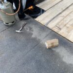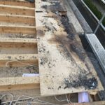 Am Freitag war es dann endlich soweit, der erste Tag Sonne. Die Jungs konnten anfangen das alte Dach abzureißen. Sie haben direkt mit dem ersten Drittel begonnen. Dabei entdeckten sie auch das Gulli und Lüfter keine Muffe hatten und hier weitere Geruchsprobleme entstehen können – daraufhin habe ich die fehlenden Teile im OBI geholt und sie konnten diese direkt verbauen. Weiterhin wurden auch in der unteren Decke befallene Stellen im Holz entdeckt und diese direkt entfernt.